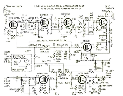 Este circuito fue encontrado en un artículo de la revista Radio Electronics de octubre de 1962. En aquella época, los decodificadores estéreo estaban en auge. El circuito es de tipo comercial.
