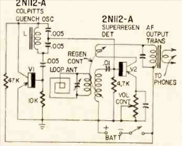 Indicado para la banda de onda media con antena de cuadro, este receptor fue publicado en la revista Radio Electronics de agosto de 1958. El circuito funcionaba con batería.