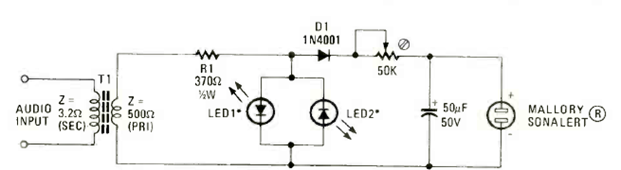 Este sencillo circuito, conectado a la salida del altavoz de una radio AM fuera de la estación, detecta los chasquidos que se producen debido a las descargas atmosféricas. El circuito fue sugerido por un artículo de la revista Radio Electronics de marzo de 1980.