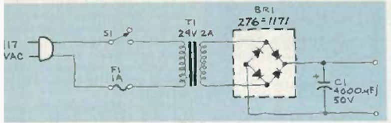 Este circuito es uno de muchos similares que se pueden encontrar en este sitio. Esta versión es de Radio Electronics de enero de 1984. Los diodos son acordes a la corriente del transformador utilizado.