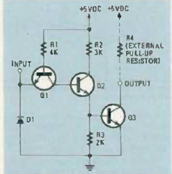 Esta es una versión discreta equivalente de una puerta TTL de colector abierto. Lo que tenemos es un circuito inversor con 3 transistores comunes.