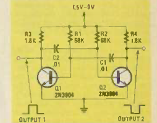 Este circuito es de una Radio Electrónica de septiembre de 1984. La frecuencia se puede cambiar cambiando C1 y C2. Los transistores son tipos de propósito general.