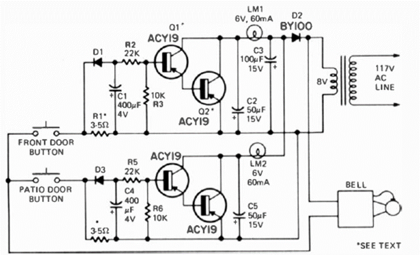 Este circuito tiene indicación visual de activación y está recomendado para personas con discapacidad auditiva. El circuito fue encontrado en la revista Radio Electronics de marzo de 1974.