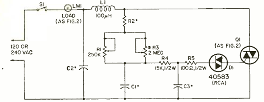 El uso de un diac mejora el rendimiento de los dos atenuadores en los circuitos anteriores. El circuito es de la misma revista Radio Electronics en un artículo que enseña a utilizar triacs.