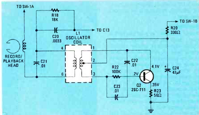 Este circuito se utilizó en grabadoras para borrar la cinta de cualquier grabación anterior para una nueva grabación. El circuito es de una Radio Electronics de septiembre de 1982.