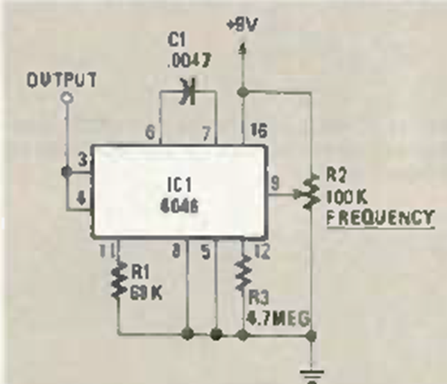 Este circuito fue encontrado en la revista Radio Electronics de noviembre de 1984. La frecuencia está dada por C1 que se puede cambiar a otras bandas.