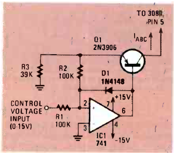 Utilizando un amplificador operacional de transconductancia, este circuito se encontró en un Radio Electronics de julio de 1983. La fuente de alimentación debe ser simétrica.