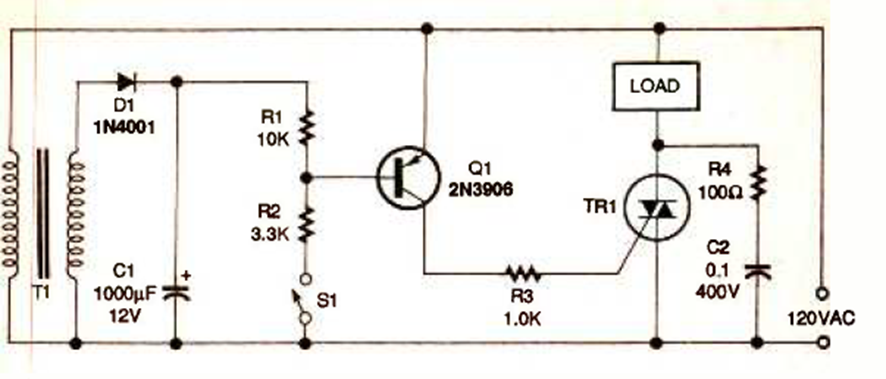 Encontramos este circuito en una revista Electronics Now de junio de 1995. El transformador tiene un primario según la red y un secundario de 6 a 9 V con 100 mA.