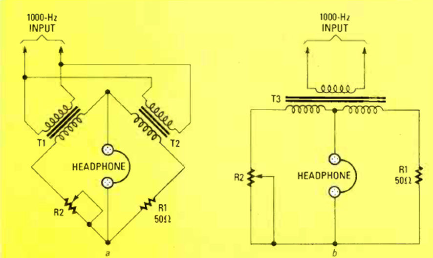 Este circuito se puede utilizar como cancelador de ruido para receptores de comunicación o incluso para receptores comunes. El circuito es de una Radio Electrónica de marzo de 1987. La impedancia del teléfono determina las características de los transformadores.