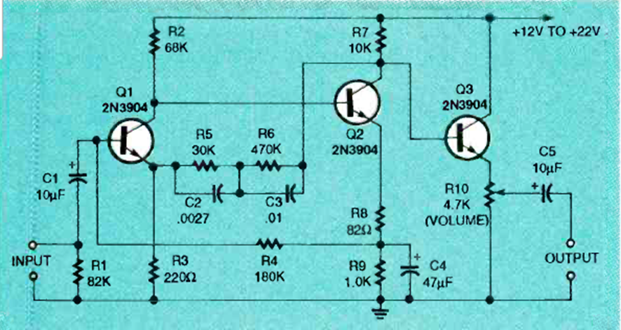 Este circuito preamplificador para cartuchos de tocadiscos se encontró en la edición de marzo de 1994 de la revista Electronics Now. Es compatible con cartuchos magnéticos.