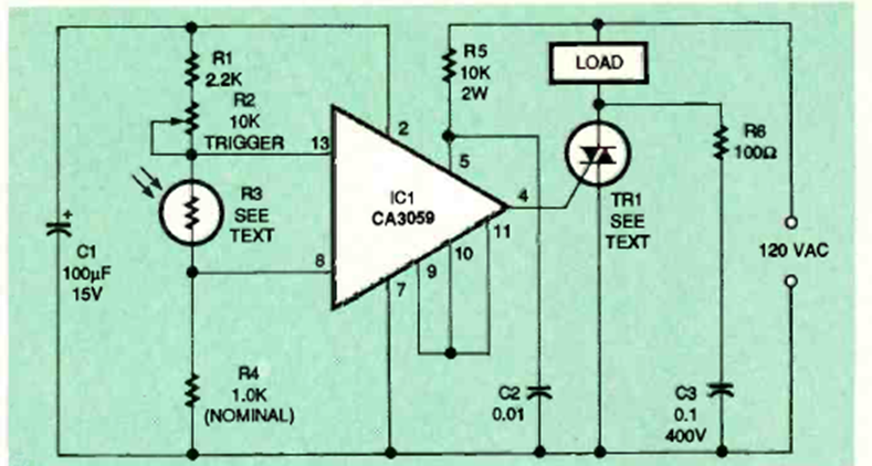 Encontramos este circuito en la revista Electronics Now de julio de 1995. El circuito integrado es de esa época y el triac según la potencia que se quiera controlar.