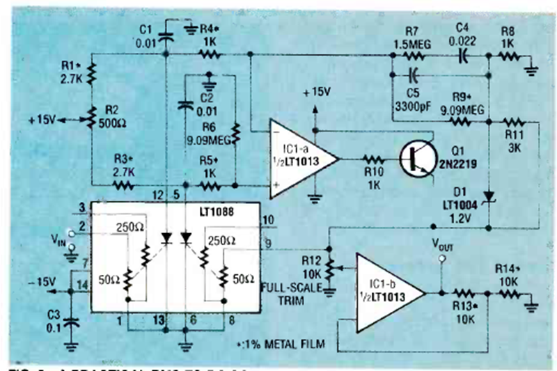 Este circuito es de una revista de Radio Electronics de agosto de 1990. El circuito utiliza componentes de la época y es adecuado para mediciones en corriente alterna.