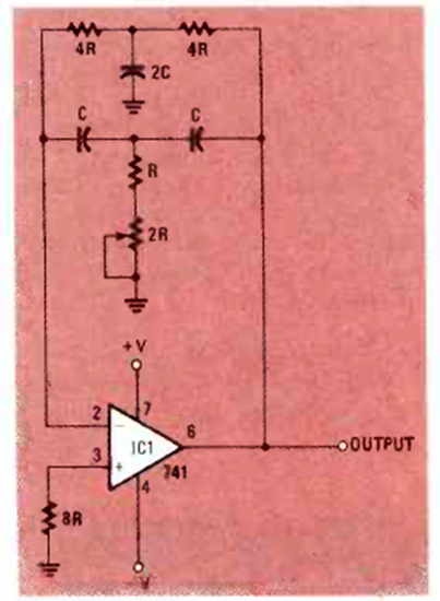 Encontramos este circuito en la edición de enero de 1988 de la revista Radio Electronics. El circuito se puede diseñar con otros amplificadores operacionales. La fuente debe ser simétrica.