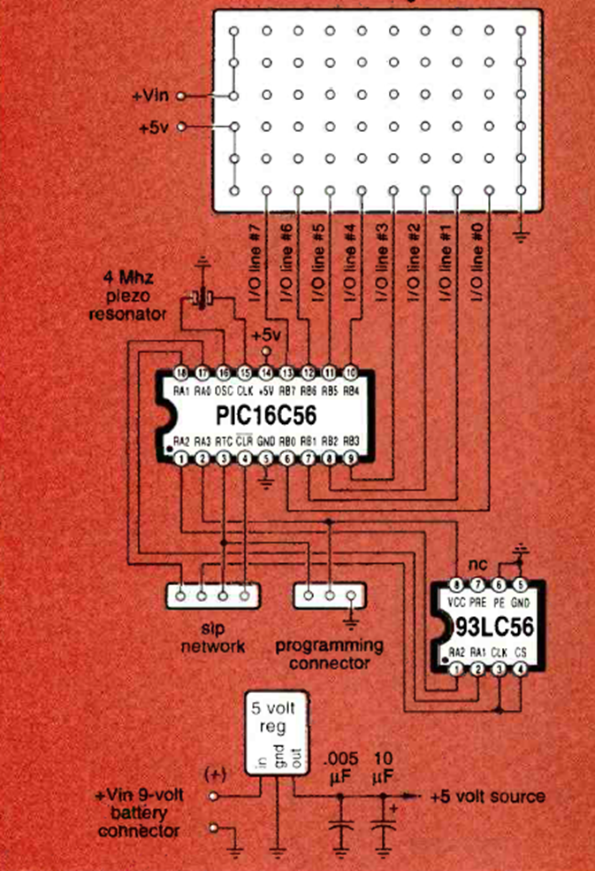 Encontrado en la edición de agosto de 1993 de Electroics Now, este es un diagrama del conocido módulo Basic Stamp utilizado en muchos conjuntos mecatrónicos que publicamos.
