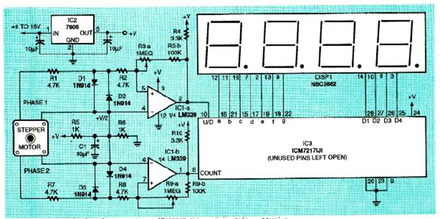 Esta interesante aplicación de un motor paso a paso como codificador sirve para probar sus posibilidades de aplicación. Lo encontramos en la revista Electronics Now de febrero de 1994.