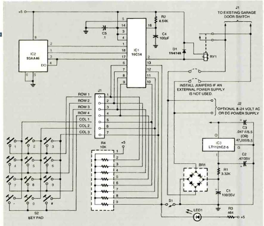 Encontramos este circuito con código clave en la edición de enero de 1999 de la revista Electronics Now. Algunos de los componentes son circuitos integrados de esa época.