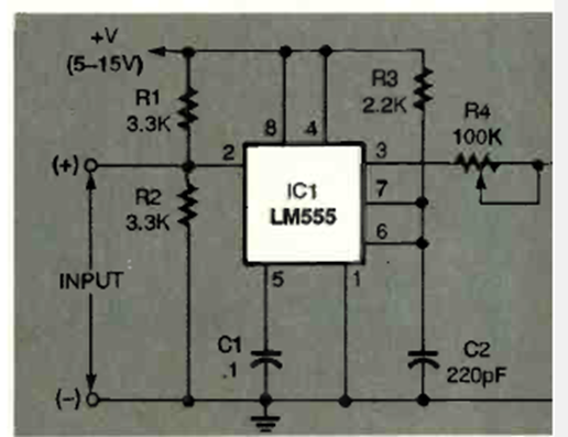 Con este circuito es posible medir frecuencias de hasta unos 500 kHz utilizando un multímetro común. El circuito es de una revista Electronics Now de noviembre de 1996.