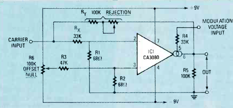 En este circuito, que se publicó en la revista Radio Electronics de mayo de 1988, se puede controlar la fase y la amplitud. El circuito requiere una fuente de alimentación simétrica.