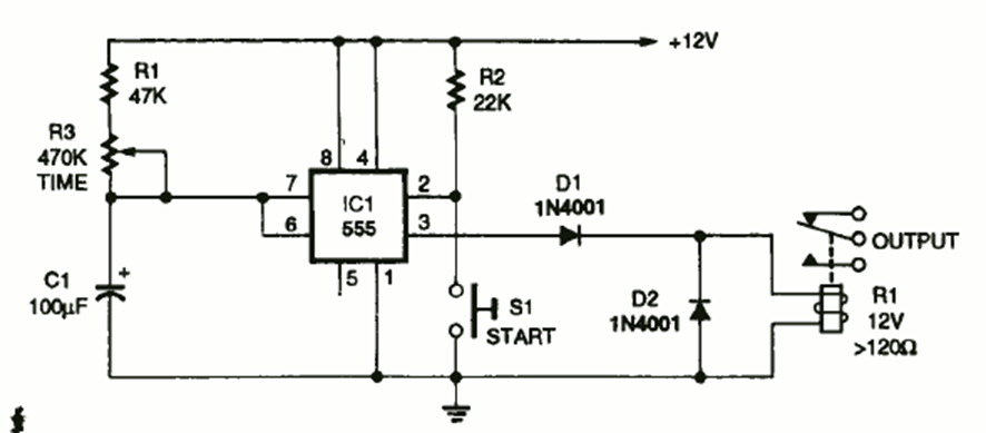 Este circuito fue encontrado en la edición de junio de 1995 de la revista Electronics Now. El relé debe ser de tipo sensible con una corriente de activación de hasta 100 mA.