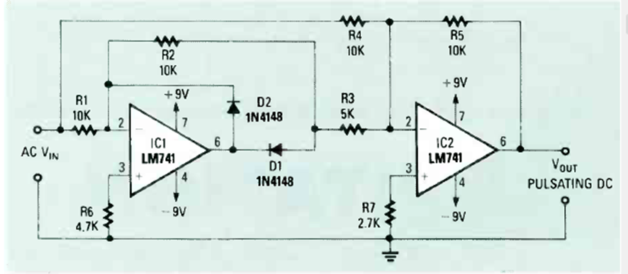 Esta versión con buffer del circuito anterior apareció en un artículo de la edición de septiembre de 1989 de la revista Radio Electronics. Se pueden utilizar otros sistemas operativos y la fuente de alimentación debe ser simétrica.