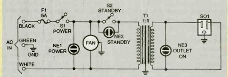 Con un transformador adaptado a la red eléctrica y devanados 1:1, este circuito de sobremesa fue encontrado en la edición de enero de 1995 de la revista Electronics Now.