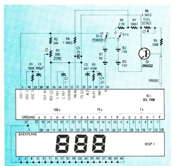Este circuito indicador digital se encontró en la edición de junio de 1988 de la revista Radio Electronics. El circuito utiliza una pantalla de cristal líquido común en esa época.