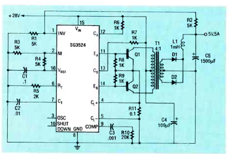 Este circuito utiliza el SQ3524, un circuito integrado de conmutación. El circuito fue encontrado en la edición de abril de 1991 de la revista Radio Electronics.