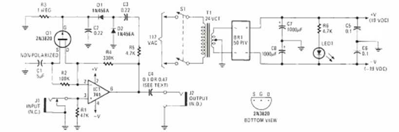 Este circuito es adecuado para la transmisión de radio para obtener un mayor alcance comprimiendo las señales de audio. El circuito es de una Radioo Electronics Special Projects de 1993.