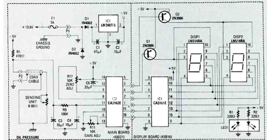 Utilizando un sensor de la época, este circuito fue encontrado en la revista Radio Electronics Handbook de 1992. El circuito utiliza un par de convertidores A/D integrados de dos dígitos.