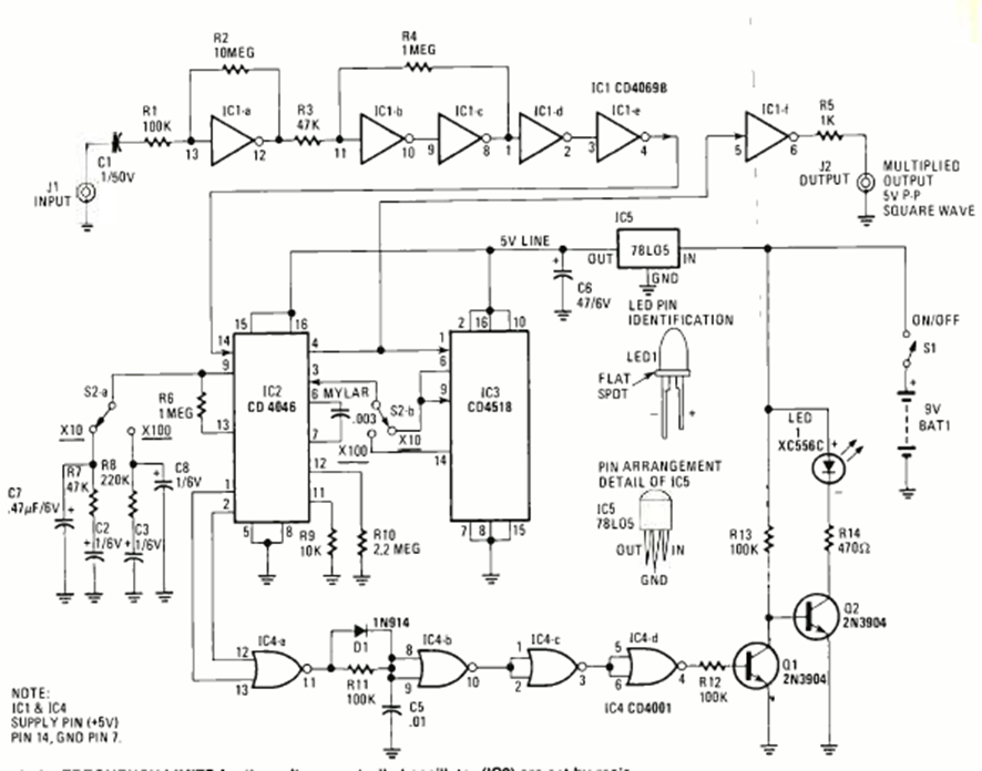 Encontramos este circuito en la Electronics Experimenter Special Projects de 1981. El circuito multiplica la señal de entrada por un valor programado, operando hasta unos pocos megahertz.