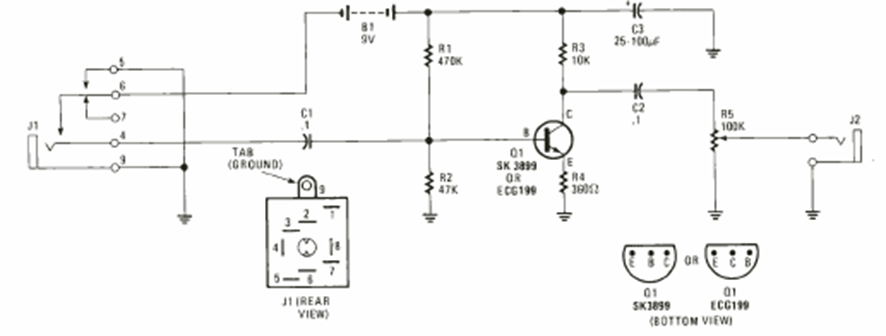 Encontramos este circuito en los Radio Electronics Special Projects de 1992. El circuito enciende la alimentación cuando se inserta el enchufe del micrófono en el conector de entrada.