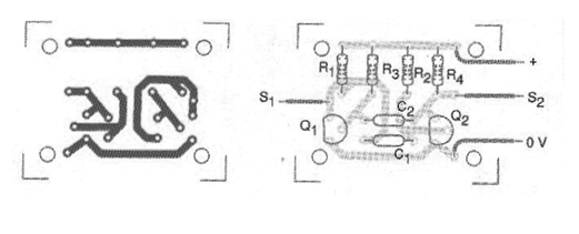 En la figura 2 tenemos una sugerencia de placa de circuito impreso para el montaje de este oscilador.