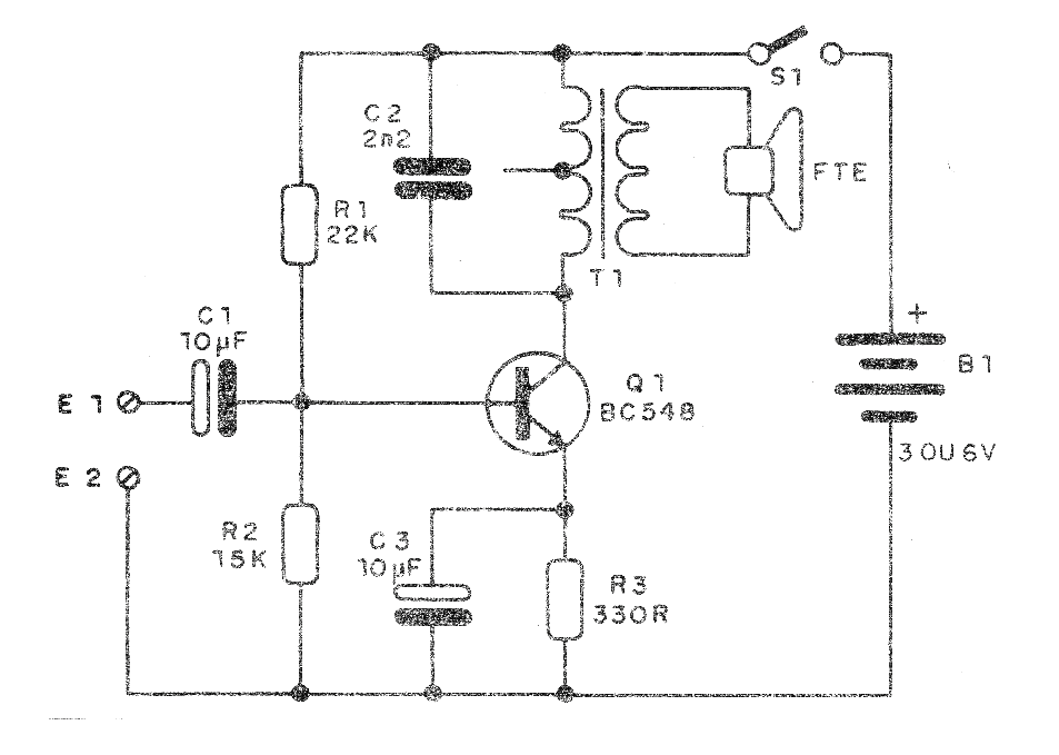 El pequeño transformador es del tipo de salida encontrado en viejos radios transistorizados. Para la entrada se puede utilizar un cable con enchufe, como en los auriculares comunes, o dos hilos con garras.