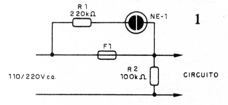 El circuito que presentamos utiliza sólo tres componentes con el fin de indicar cuando el fusible de algún aparato conectado a la red se quema. Una lámpara de neón se enciende, indicando esto.