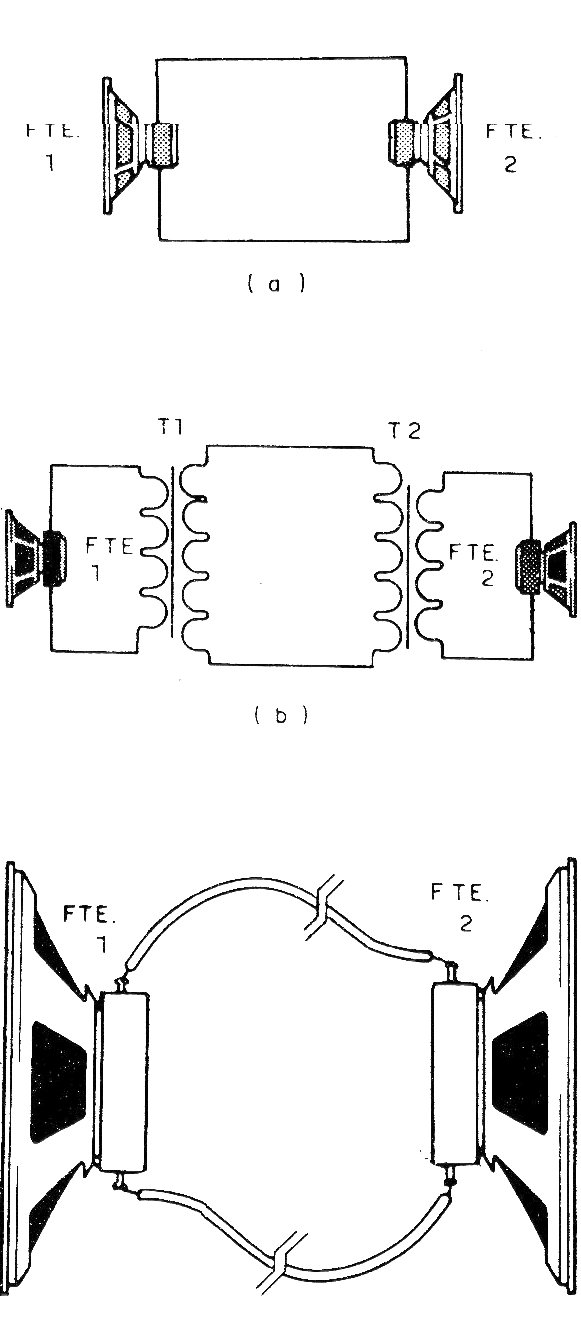 Sólo dos altavoces forman este teléfono improvisado en su versión más simple. Con el uso de dos transformadores podemos aumentar su alcance.