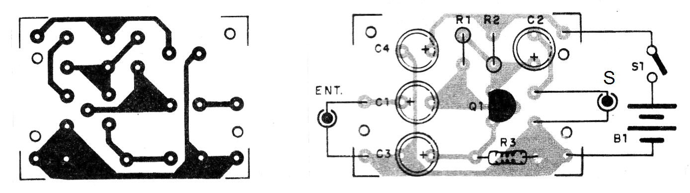 En la figura 3 tenemos una sugerencia de placa de circuito impreso para el montaje del preamplificador.