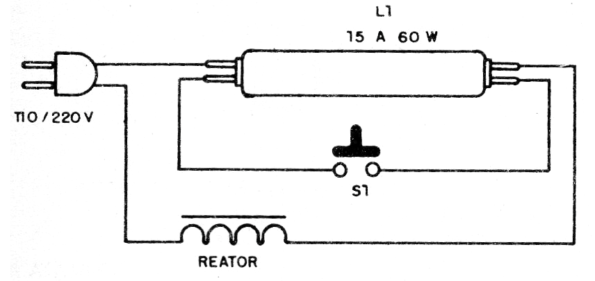 La luz fluorescente en la bancada es importante tanto para la precisión de los trabajos y por el hecho de no forzar la visión de quien la usa. El sistema que describimos utiliza una lámpara fluorescente común un reactor tradicional y en lugar del interruptor de presión un interruptor de presión.