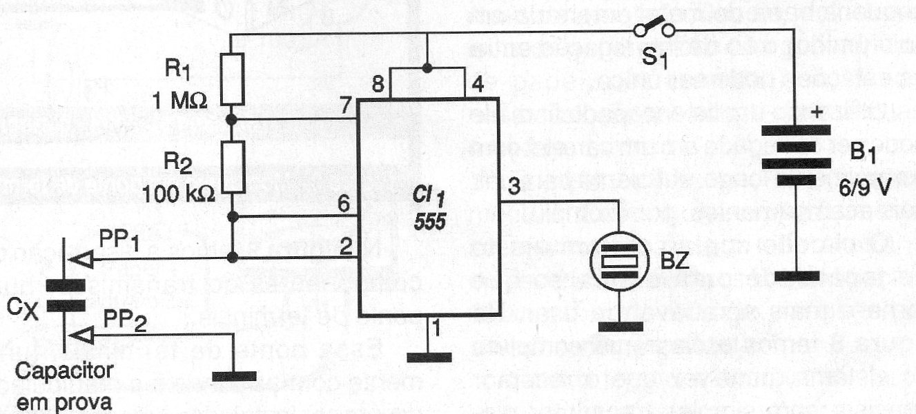 Con este circuito podemos probar capacitores cerámicos, poliéster, styroflex y otros tipos no polarizados en el rango de valores de 1 nF a 470 nF.