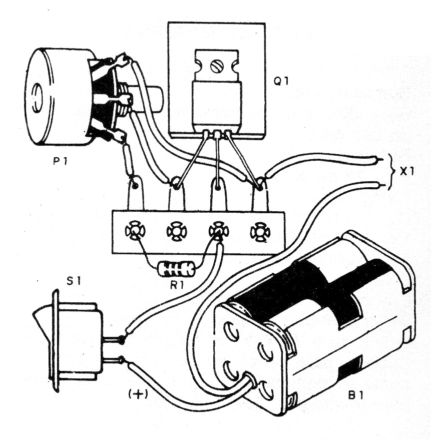 Botón para el potenciómetro, puente de terminales, radiador para el transistor, soporte de pilas (si es necesario), hilos, soldadura, etc.
