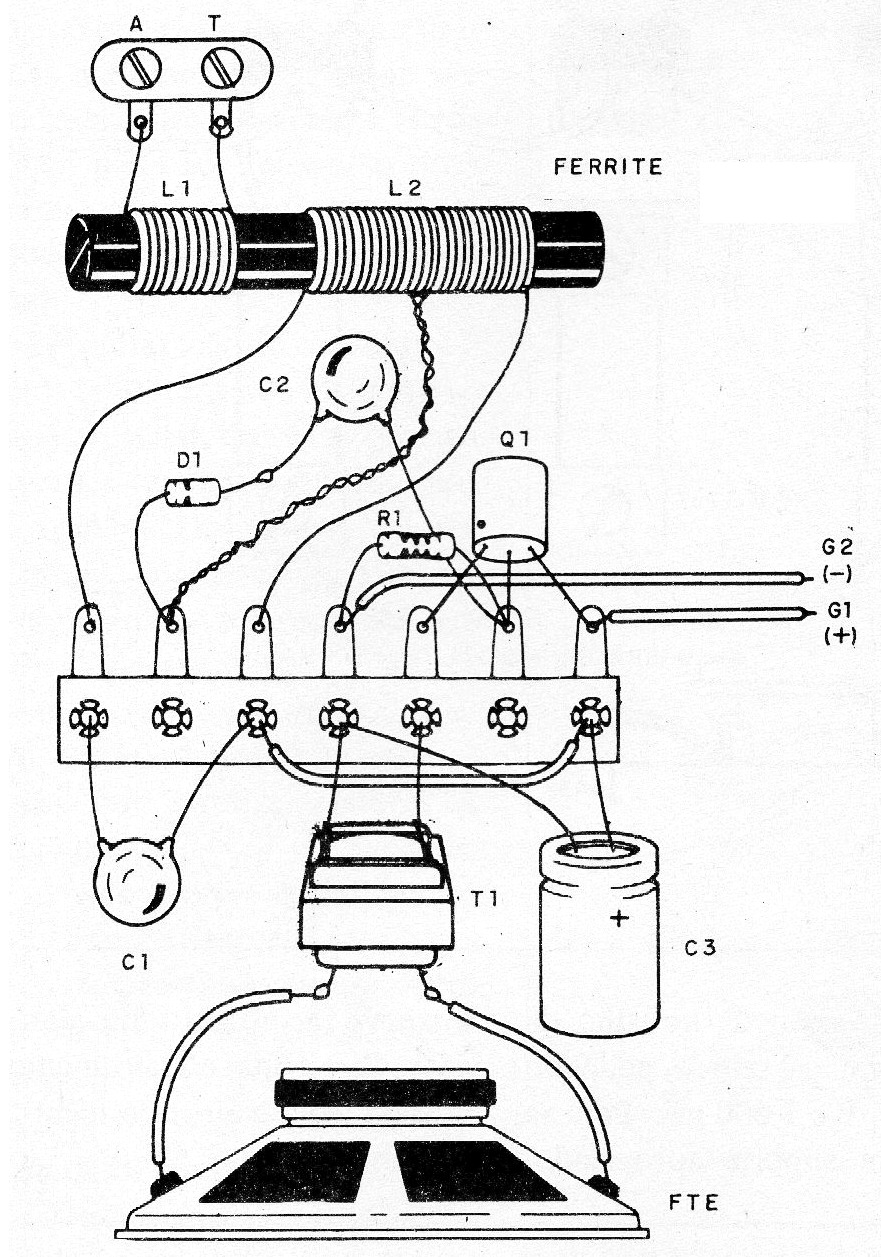 En la figura 1 tenemos el diagrama completo del receptor. Los componentes se pueden soldar en un puente de terminales, como se muestra en la figura 2.