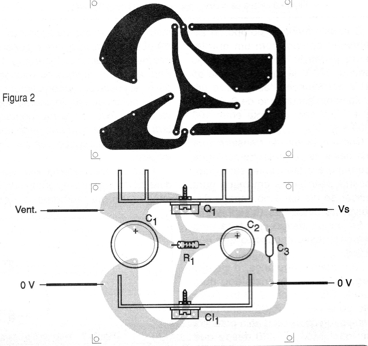 La placa de circuito impreso para el montaje de este regulador reforzado (booster) se sugiere en la figura 2.