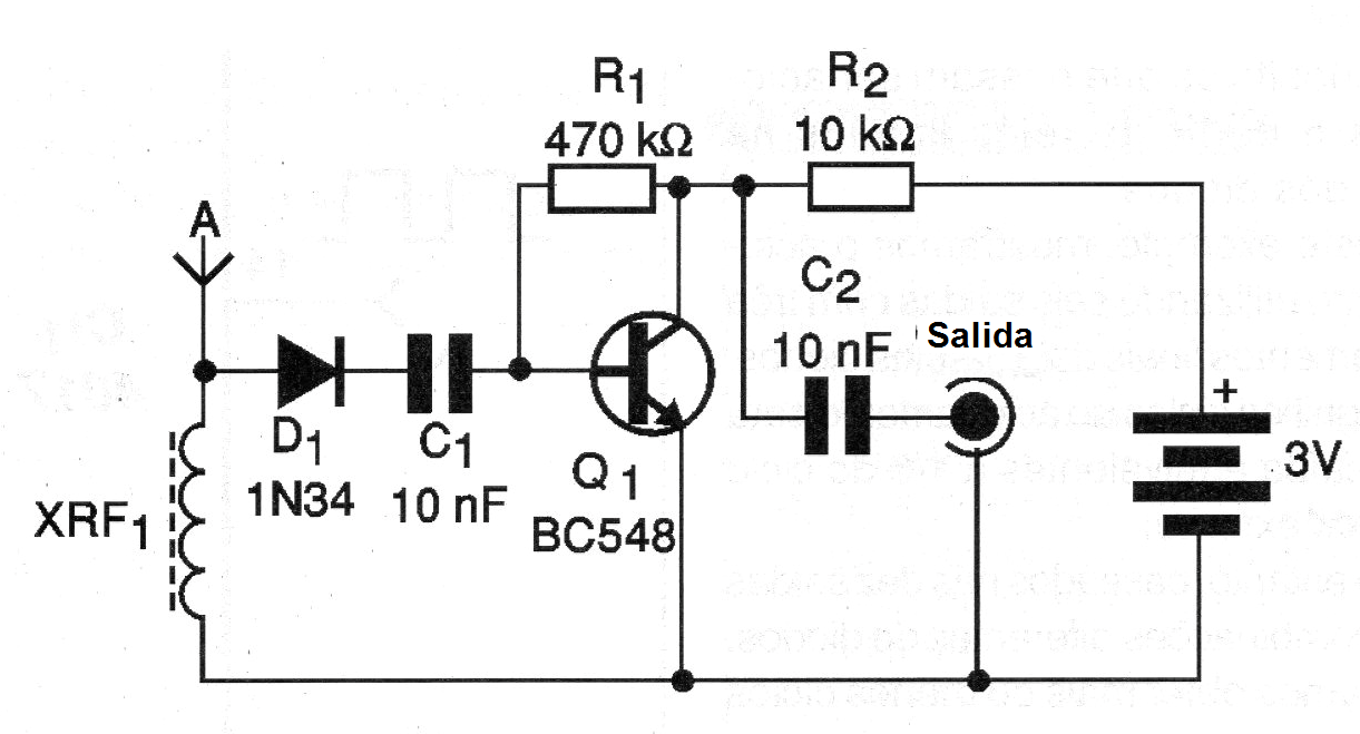 El circuito mostrado en la Figura 1 captura una amplia gama del espectro electromagnético mediante la detección y amplificación de la entrada para su aplicación a un osciloscopio.