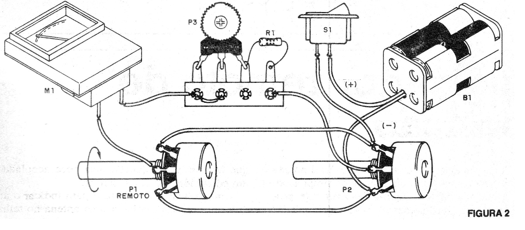 P1 es el potenciómetro sensor que se conecta remotamente a través de 3 hilos que pueden tener hasta 20 metros de longitud.