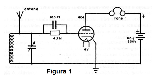 Antes, del advenimiento del transistor se podía hacer una radio con amplificación para la señal apenas usando válvulas. Tenemos entonces una versión equivalente de nuestra radio simple transistorizada en la que se emplea una válvula triodo. El circuito de radio simple con válvula se muestra en la figura 1.