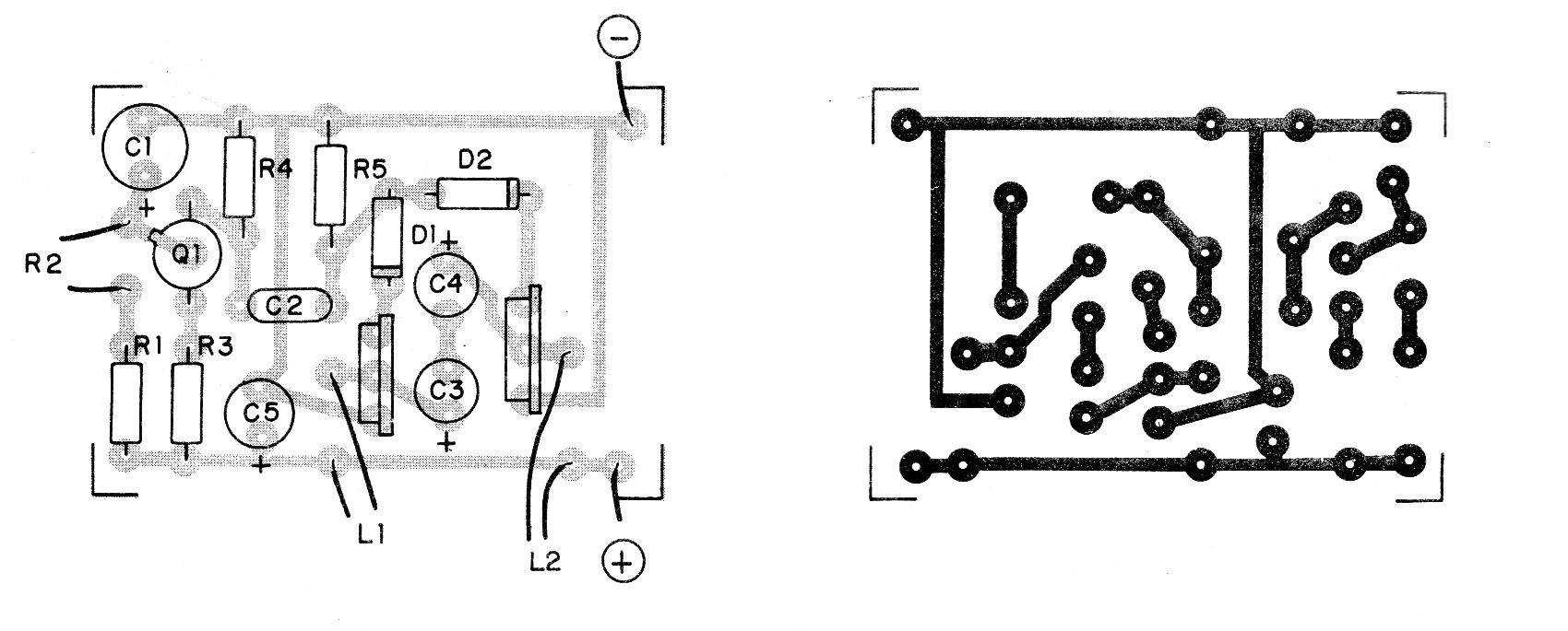 El montaje se puede realizar en una pequeña placa de circuito impreso que se muestra en la figura 2.