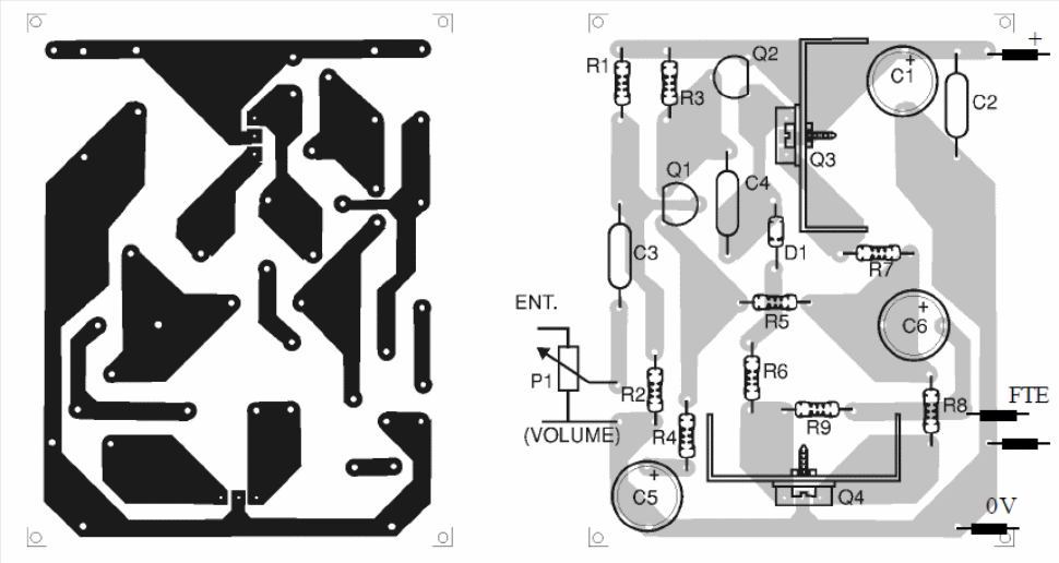 La configuración en simetría complementaria de este amplificador permite obtener una excelente calidad de audio, principalmente si el altavoz utilizado es del tipo pesado, de buena calidad, montado en un pequeño altavoz. Al montar dos amplificadores iguales usted tendrá un sistema de sonido estéreo con potencia similar a la mayoría de los sistemas de 3 en 1 que existen en el mercado.