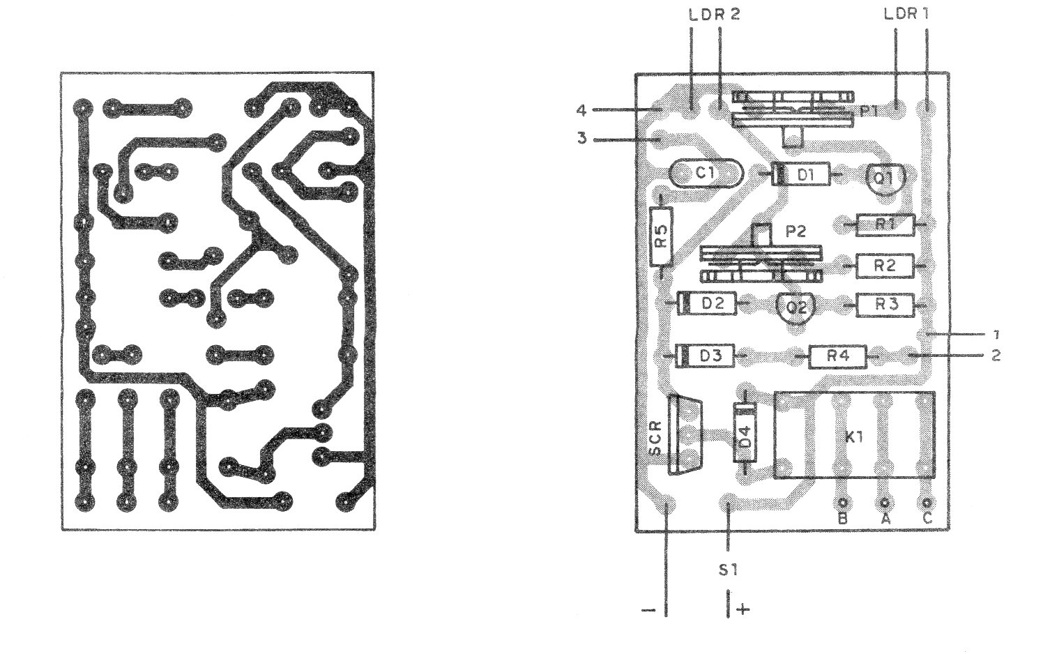 Los potenciómetros P1 y P2 sirven para controlar la sensibilidad, también pudiendo ser empleados trimpots. Estos se refieren a los sensores de luz.