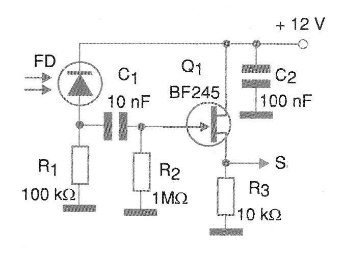 El circuito de la figura 1 puede ser utilizado como receptor para el bloque anterior. Su sensor es un foto-diodo o foto-transistor de cualquier tipo.