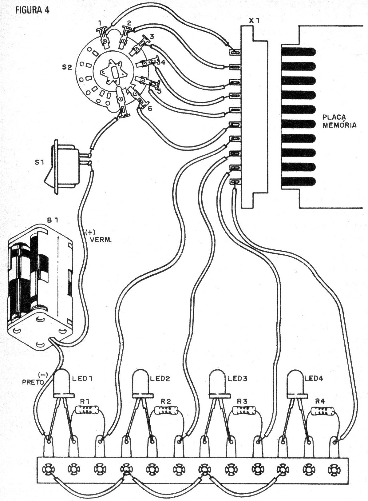 La llave rotativa puede ser sustituida por un sistema de "lectura" con una garra jacaré y hilos soldados a un puente de terminales. Conforme al terminal en que la garra es presa tendremos el número de la memoria "llamada".