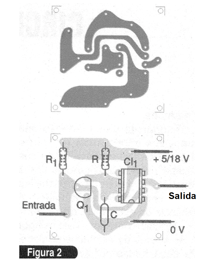 En la figura 2 tenemos la placa de circuito impreso para el montaje del detector.